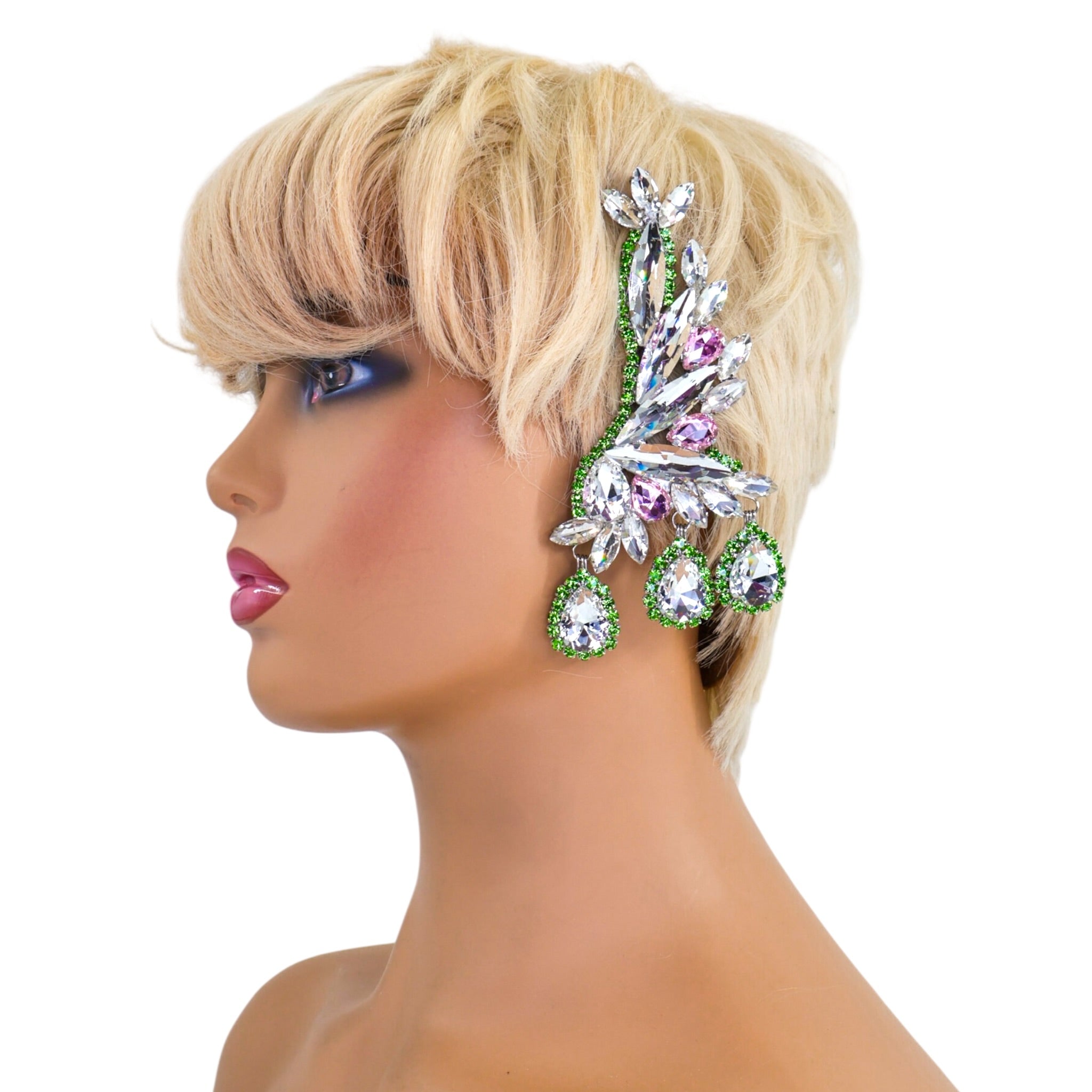 Designed for pageantry, drag stages, and elevated performances, each pair is fully customizable—allowing you to select your preferred color combination to perfectly complement your look. Bold yet graceful, Siren’s Crest captures light from every angle, transforming each turn into a moment of controlled glamour.